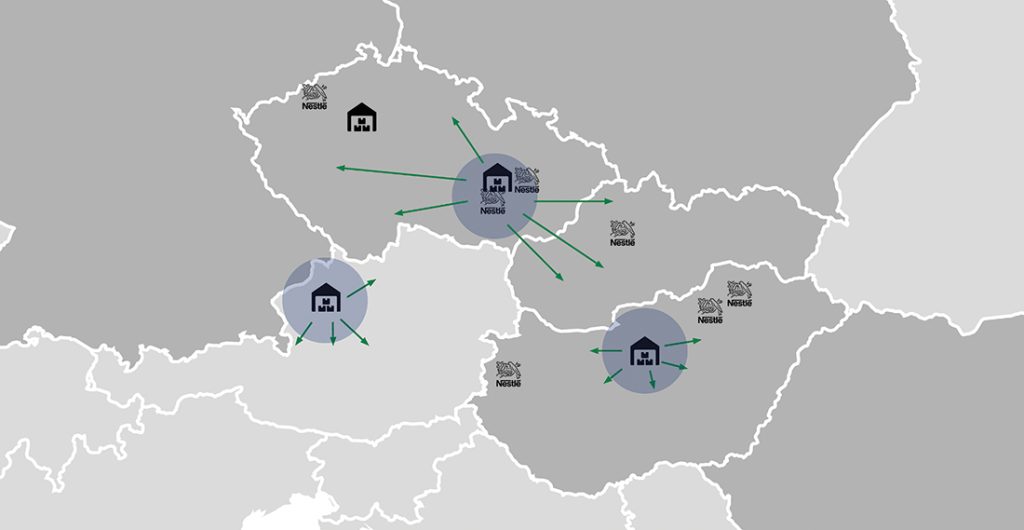 Na konci dekády padlo rozhodnutí soustředit logistické operace do jednoho distribučního centra. „Logistiku zjednodušit, fungovat z jednoho místa, komunikovat s jedním partnerem. Skladování a dopravu svěřit do rukou jednomu subjektu, a to s dalšími efekty jako zlepšení servisní úrovně, zvýšení vytíženosti aut při přepravě nebo snížení zásob,“ vysvětluje cíle konsolidace Katarína Dobišová, manažerka distribuce pro Česko a Slovensko ve společnosti Nestlé. K úspěchu v tendru na vytvoření jednotného DC pro český a slovenský trh HOPI Holdingu přispělo několik faktorů.