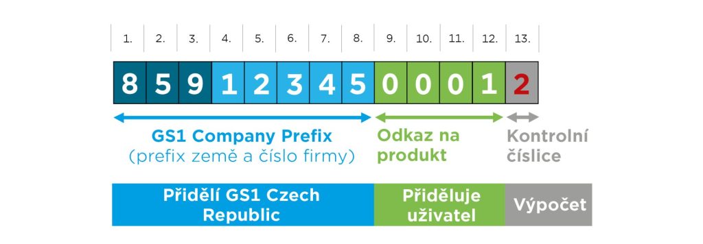 Délka předčíslí určuje, kolik čísel obdržíte – čím kratší je GCP, tím více čísel získáte. Poslední číslice GTIN je kontrolní, vypočítává se automaticky, aby byla zajištěna funkčnost čárového kódu.